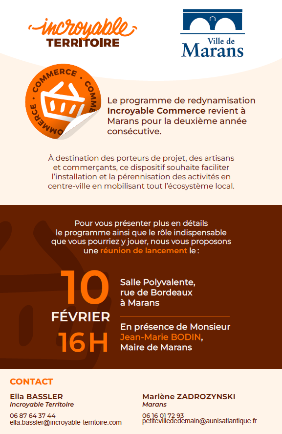 La Ville de Marans remercie chaleureusement l’ensemble des acteurs mobilisés et espère vous retrouver nombreux pour contribuer au succès de cette nouvelle édition d’Incroyable Commerce.